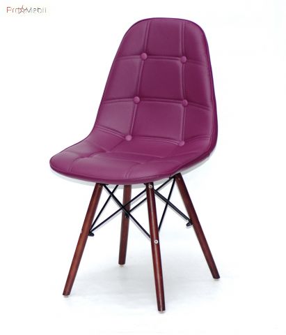 Стілець Alex-W ЕК пурпурний 61 Onder Mebli - зручний стілець зі спинкою. Виготовлений в Малайзії. Виконується в різних кольорах. Стильний, оригінальний стілець з дерев'яними ніжками, м'якою спинкою і сидінням зі шкірозамінника. Дерев'яні ноги з'єднані металевими прутами і пофарбовані в горіховий колір. Добре впишеться як в класичний, так і в сучасний інтер'єр.