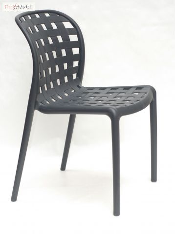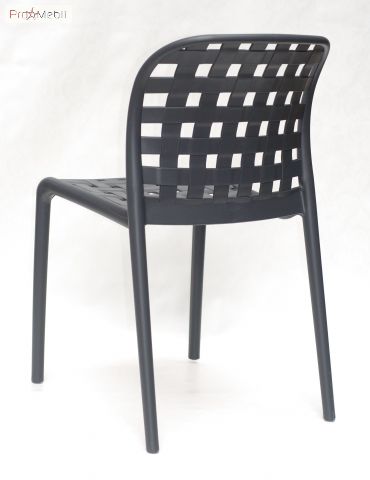 Стілець Gari антрацит 01 Onder Mebli - зручний стілець зі спинкою. Виготовлений в Малайзії. Представлений в різних кольорах. Стильний, оригінальний стілець з вигнутою спинкою у вигляді плетеного квадрата. Призначений для використання в житловому інтер'єрі, дачі, відкритих майданчиках, кафе, терасах.