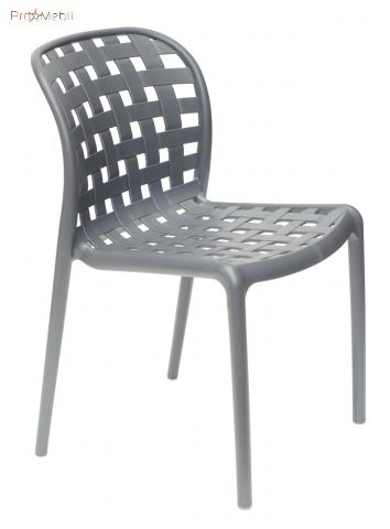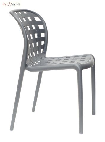 Стілець Gari сірий 21 Onder Mebli - зручний стілець зі спинкою. Виготовлений в Малайзії. Представлений в різних кольорах. Стильний, оригінальний стілець з вигнутою спинкою у вигляді плетеного квадрата. Призначений для використання в житловому інтер'єрі, дачі, відкритих майданчиках, кафе, терасах.