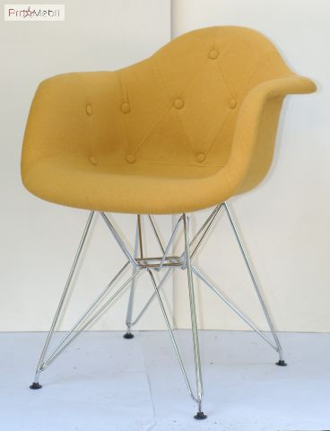 Стілець Leon Soft CH-ML Шерсть жовтий W-4 Onder Mebli - зручний стілець зі спинкою. Виготовлений в Малайзії. Виконується в різних кольорах. Стильний, оригінальний стілець з хромованими ніжками з'єднаний металевими прутами. Матеріал обшивки - тканину Шерсть.
