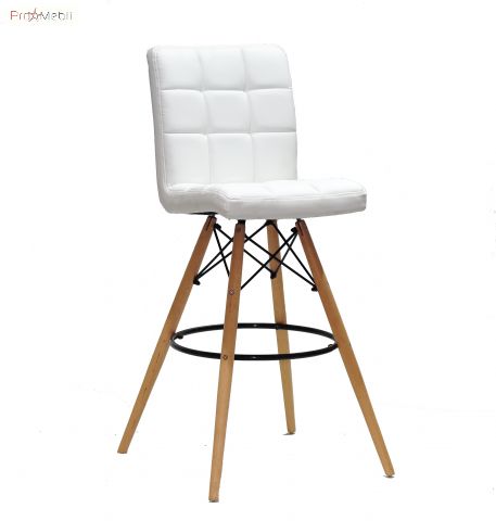 Стул Marcus Bar 75 ЭК белый Onder Mebli - удобный стул со спинкой оригинальной формы. Изготовлен в Малайзии. Выполняется в разных цветах. Стильный, оригинальный стул с деревянными ножками соединенные металлическими прутьями, мягкой спинкой и мягким сиденьем из кожзама.