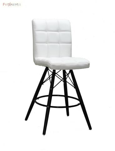 Стул Marcus Bar BK 65 ЭК белый Onder Mebli - удобный стул со спинкой оригинальной формы. Изготовлен в Малайзии. Выполняется в разных цветах. Стильный, оригинальный стул с деревянными ножками соединенные металлическими прутьями черного цвета, мягкой спинкой и мягким сиденьем из кожзама.