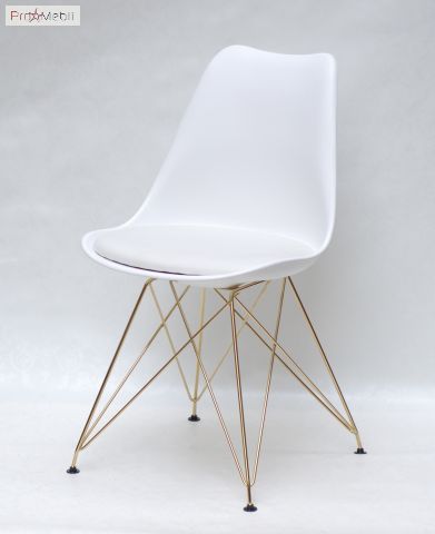 Стул Milan GD-ML белый 07 Onder Mebli - удобный стул со спинкой. Изготовлен в Малайзии. Выполняется в разных цветах. Стильный, оригинальный стул с удобной спинкой, мягким сиденьем из кожзама. Ножки - металлические, золотистого цвета соединенные между собой прутьями.