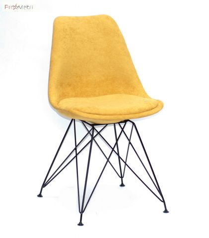 Стул Milan Soft Шенилл BK-ML желтый G-100 Onder Mebli - удобный стул со спинкой. Изготовлен в Малайзии. Выполняется в разных цветах. Стильный, оригинальный стул с удобной спинкой, мягким сиденьем из Бархата. Ножки - металлические, соединенные между собой прутьями.