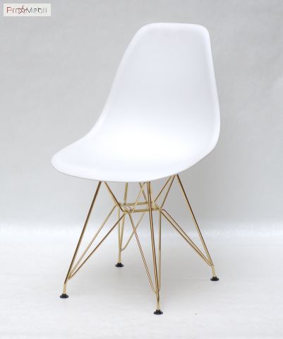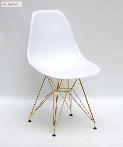 Стул Nik GD-ML белый 07 Onder Mebli - современный, дизайнерский удобный стул со спинкой. Изготовлен в Малайзии. Выполняется в разных цветах. Стильный, оригинальный стул с ножками соединенные прутьями золотистого цвета.