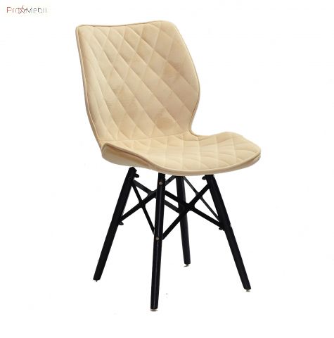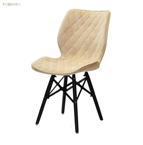Стул Nolan Б-Т XXL BK бежевый B-1005 ЭК Onder Mebli - удобный стул с изогнутой спинкой. Изготовлен в Малайзии. Представлен в разных цветах. Стильный, оригинальный стул из бархата на деревянных ножках соединенные металлическими прутьями черного цвета.