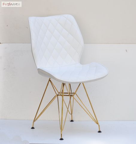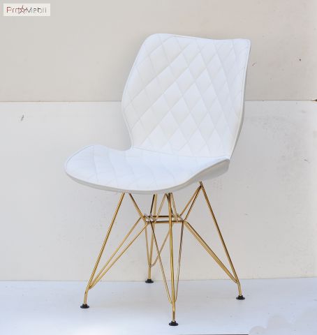 Стул Nolan GD-ML белый ЭК Onder Mebli - удобный стул с изогнутой спинкой. Изготовлен в Малайзии. Представлен в разных цветах. Стильный, оригинальный стул из кожзама на металлических ножках золотистого цвета.