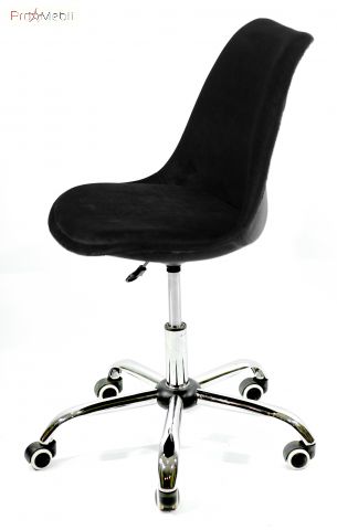 Стул офисный Milan Soft Office Бархат черный B - 4 Onder Mebli - стильный стул, который имеет изогнутую форму. Корпус - твердый из пластика, а спинка и сиденье оббиты приятной тканью из бархата. Крестовина хромированная с прорезиненными колесами. Стул для вас и вашего интерьера.