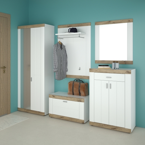 Стильна та практична тумба для взуття 1Д Санторіні Сокме збереже лад у вашому будинку та стане чудовим доповненням передпокою. Тумба містить одні відкидні двері, за якими розташоване просторе відділення. Колекція привертає увагу: мінімалістичним дизайном; елегантним поєднанням білого з верхніми та нижніми краями, імітуючи натуральне дерево у кольорі «дуб вікінг»; суворим фрезеруванням фасадів; довгастими ручками, сріблястого кольору; стійкими ніжками; фірмовими комплектуючими. Приголомшливі меблі Санторіні Сокме стануть справжньою окрасою, як у сучасному, так і до традиційного інтер'єру.