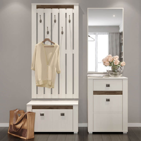 Тумба для взуття BUT2D Селена Gerbor дає змогу акуратно організувати зберігання взуття, запобігаючи його розкиданню по дому. Це особливо важливо в умовах обмеженого простору, де кожен квадратний метр на рахунку. Вона допомагає зберегти взуття в гарному стані, захищаючи його від пилу та механічних пошкоджень. Тумба містить два закритих відділення з полицею в кожному. Корпус і фасадні частини виробів виготовлені з ламінованого ДСП завтовшки 16 мм українського концерну "SWISS KRONO Group", у цікавому поєднанні "ясен сніговий" з контрастними темними вставками "дуб ансберг темний". Меблі Селена Gerbor приваблюють простотою, ергономічністю і функціональністю; оригінальним і виразним поєднанням; незвичайними металевими квадратними ручками SIRO з орнаментом; пластиковими ніжками EteraPlast; фірмовими комплектуючими: навісні петлі FGV із системою тихого закриття. Меблі Selena Gerbor практичне і свіже рішення для Вашого інтер'єру.