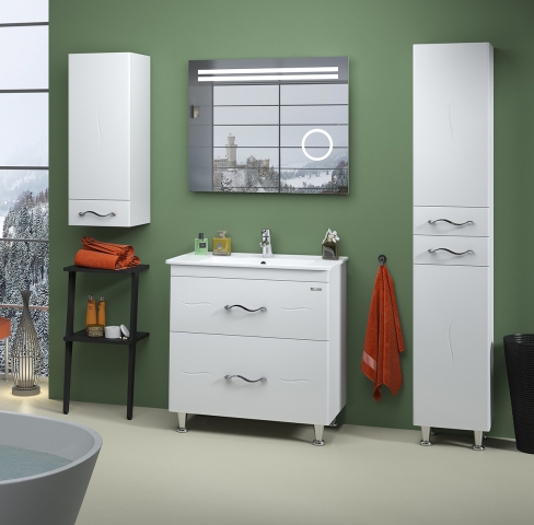 Тумба для ванної з умивальником 100 Sava Mindal Sanwerk чудово доповнить інтер’єр ванної кімнати і допоможе раціонально використовувати простір під раковиною і покращує естетичний вигляд в цілому. Тумба комплектується керамічним умивальником «Sava», виробник «Lapino», Туреччина, товщина умивальника - 50 мм, глибина - 115 мм. Стильна тумба має дві висувні шухляди, що дозволяє зберігати різну побутову хімію і господарські дрібниці. Корпус і фасади виготовлені з високоякісного МДФ товщиною 16 мм і пофарбовані фарбою італійського виробництва Sayerlack "білого" кольору. Головною особливістю серії є фрезерований декор на фасаді, ручка-скоба з хвилеподібним вигином розміром 207 мм, підкреслює цілісність образу і доповнюють загальне враження, стійкі ніжки, фурнітура високої якості Blum (Австрія), що забезпечує плавне, м'яке закриття і довгу, надійну роботу всіх рухомих частин. Меблі Mindal Sanwerk чудово впишеться в більшість інтер'єрів і всюди будуть виглядати органічно і сучасно.