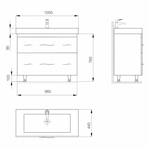 Опис Тумба для ванної з умивальником 100 Sava Mindal Sanwerk