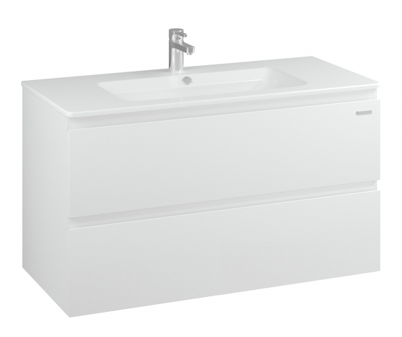 Тумба для ванної з умивальником 101 Еmma Foreva Air Sanwerk чудово доповнить інтер’єр ванної кімнати і допоможе раціонально використовувати простір під раковиною і покращує естетичний вигляд в цілому. Тумба комплектується керамічним умивальником «Еmma», виробник «Gala Ceramicas», Іспанія товщина умивальника - 14 мм, глибина - 110 мм. Стильна підвісна тумба має дві висувні шухляди, що дозволяє зберігати різну побутову хімію і господарські дрібниці. Меблі підвісні, кріплення до стіни - Camar (Італія). Корпус і фасадні частини виготовлені з особливого пластику товщиною 19 мм виробництва Німеччина, який аналогічний за своїми властивостями і щільності натуральній деревині. Матеріал являє собою міцний ПВХ-аналог дерева / фанери / мультиплексу з твердої, гладкої, пласкої, глянсової і білої поверхні. Матеріал легкий, але при цьому, він має гарну міцність на вигин, він водонепроникний, він не буде гнити, покриватися грибковою цвіллю. Головною особливістю серії є лаконічний дизайн, прості геометричні форми, функціональність елементів, відсутність ручок, їх роль виконують фрезеровані виїмки на фасаді, глянсове покриття, фурнітура високої якості Blum (Австрія), що забезпечує плавне, м’яке закриття і довгу, надійну роботу всіх рухомих частин. Колекція Foreva Air Sanwerk - це відмінне рішення для ванної кімнати, створить відчуття легкості, польоту в повітрі, меблі поєднується з різними інтер’єрами і стилями.