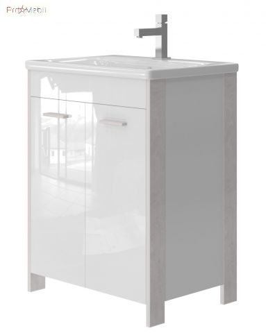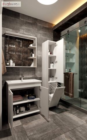 Тумба для ванної з умивальником Br-65 Brooklyn Ювента чудово доповнить інтер'єр ванної кімнати. Тумба з керамічний умивальник "Soft-65", виробник "Sanovit", Туреччина і має одне закрите відділення з двома дверцятами, внутрішній простір за якими розділено полицею, яка виготовлена з ДСП двостороннього ламінування білого кольору товщиною 16 мм. У конструкції передбачено отвір для підведення зливу. Brooklyn Juventa - стильна колекція з універсальним дизайном від української фабрики Ювента, для облаштування ванної кімнати. Корпус і фасадні частини виготовлені з ламінованого ДСП товщиною 16 мм і покриті білою глянцевою емаллю з оригінальним декором з натурального дерева - в білому матовому кольорі. Головною особливістю серії є функціональність; виразний дизайн; декоративні дерев'яні ручки; ніжки-боковини; самодовідні петлі з системою «Soft close», які забезпечують плавне і м'яке закривання. Ретельно продумані модулі Бруклін Ювента відрізняються виразним і лаконічним дизайном, і відмінно підійдуть для комфортної і сучасної ванної кімнати.