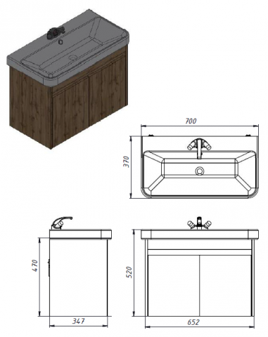 Опис Тумба для ванної з умивальником Fl-70 біла Florida Ювента