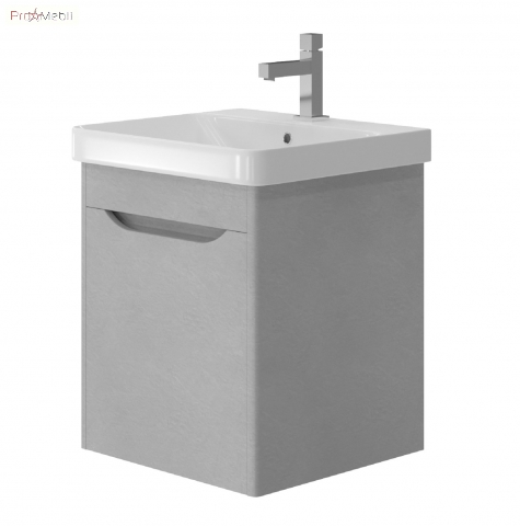 Тумба для ванної з умивальником Lvr-55 Livorno Ювента чудово доповнить інтер'єр ванної кімнати і допоможе раціонально використовувати простір під раковиною і покращує естетичний вигляд в цілому. Тумба комплектується керамічним умивальником «Luxury-55», виробник «Sanovit», Туреччина і має одне закрите відділення з орними дверцями, внутрішній простір за якою дозволяє зберігати різну побутову хімію і господарські дрібниці. У конструкції передбачений підведення і відведення води. Тумба може бути як підвісною, так і підлоговою. Для підвішування вмонтовано два регульованих навісу. Для підлогової установки додатково комплектується двома або чотирма ніжками висотою 200 мм, по вашому побажанню (ніжки в вартість комплекту не включені). Корпус і фасадні частини виготовлені з МДФ одностороннього ламінування товщиною 16 мм. Зовнішня поверхня меблів покрита матовою структурною ПВХ-плівкою сірого кольору. Головною особливістю серії є лаконічний дизайн, динамічні лінії, плавні форми; відсутність ручок, їх роль виконують фрезеровані на фасаді виїмки; шухляди і двері з системою «Soft close», які забезпечують плавне і м'яке закривання. Колекція Livorno Ювента - це найкраще рішення для ванної кімнати, завдяки своїм параметрам поєднується з найрізноманітнішими інтер'єрами і стилями.