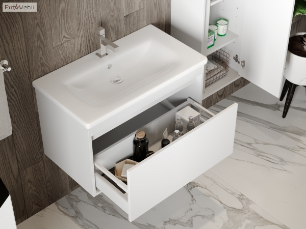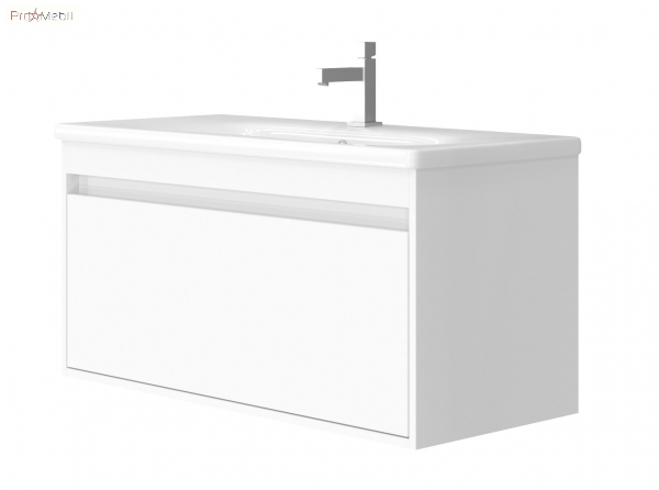 Тумба для ванної з умивальником Mlt-100 Malta Ювента гарно доповнить інтер'єр ванної кімнати і допоможе раціонально використовувати простір під раковиною і покращує естетичний вигляд в цілому. Тумба комплектується керамічним умивальником «Soft-100», виробник «Sanovit», Туреччина і має одну висувну шухляду, яка дозволяє зручно розкласти всілякі гелі, креми, рушники та інші речі, заховати побутову хімію, приховуючи їх від оточуючих. Ви можете укомплектувати тумбу сифоном «Нептун» Н0410, який ідеально підходить для відводу води у відповідності з особливостями конструкції тумби. Корпус і фасадні частини виробів виготовлені з ламінованого ДСП товщиною 16 мм і пофарбовані матовою емаллю білого кольору, який ідеально впишеться в будь-який дизайн. Характерними особливостями меблів Malta Ювента є лаконічність і функціональність; бездоганність форм; мінімальне декоративне оформлення; цікаве дизайнерське рішення: відсутність традиційних ручок, фасади відкриваються легким натисканням завдяки системі Push to Open; підвісний монтаж - кріплення до стіни; напрямні повного висунення Atira з металевими боковинами, виробник "Hettich" і самодовідні петлі, які забезпечують плавне і м'яке закривання. Серія комплектується дзеркальними шафами «Bronx Ювента» або дзеркальними панелями «Arizona Ювента». Меблі Malta Juventa лаконічні і функціональні, вони дозволить зробити простір ванної кімнати максимально комфортним.