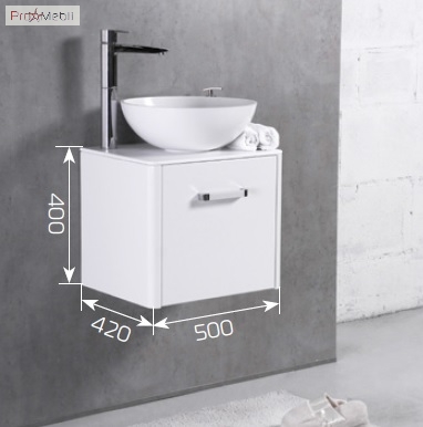 Тумба для ванної з умивальником Fiji 50 Mona Fancy Marble чудово доповнить інтер'єр ванної кімнати і допоможе раціонально використовувати простір під раковиною і покращує естетичний вигляд в цілому. Тумба комплектується умивальником з литого штучного каменю моделі Kris 420 чашоподібної форми і має одну висувну шухляду, яка дозволяє зберігати різну побутову хімію і господарські дрібниці. Для підвішування вмонтовано два регульованих навіси. Корпус і фасадні частини виготовлені з МДФ товщиною 16 мм, поверхня меблів покрита вологостійкою ПВХ-плівкою. Акуратна тумба виконана в класичному кольорі білий глянець, з можливістю виготовити в кольорі білий матовий і графіт матовий. Головною особливістю є динамічні лінії, прямокутні форми; довгасті металеві ручки; система «Soft close», яка забезпечує плавне і м'яке закривання. Fancy Marble - уособлення по-справжньому високої якості, витонченого дизайну і відмінною функціональності.