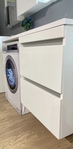тумба має дві висувні шухляди, місце для пральної машини |