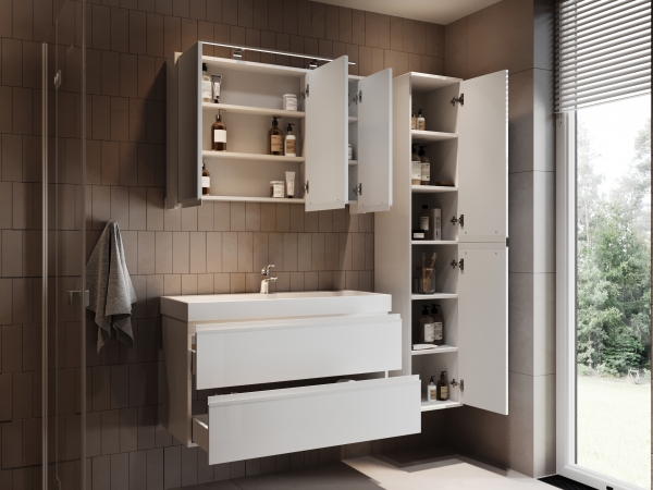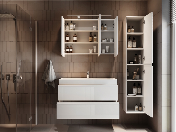Тумба для ванної з умивальником Sv-100 Savona New Ювента гарно доповнить інтер'єр ванної кімнати і допоможе раціонально використовувати простір під раковиною і покращує естетичний вигляд в цілому. Тумба комплектується умивальник зі штучного каменю «Streng-100», виробник «Адамант», Україна і має дві висувні шухляди, які дозволяють зручно розкласти всілякі гелі, креми, рушники та інші речі, заховати побутову хімію, приховуючи їх від оточуючих. В конструкції передбачено загальноприйняте та гармонізоване з усіма європейськими стандартами підведення та відведення води. Характерними особливостями меблів є поєднання елегантності та сучасного вишуканого вигляду; глянсове покриття корпусів і фасадів; ручки, виконані з алюмінієвого профілю та пофарбовані в білий колір, доповнюють образ, роблячи його цілісним та завершеним; підвісний монтаж - кріплення до стіни. Savona New Ювента - це не просто меблі, це стиль життя, де кожен предмет у ванній кімнаті відіграє свою унікальну роль, створюючи гармонію і затишок.