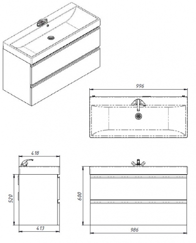Характеристики Тумба для ванної з умивальником Sv-100 Savona New Ювента
