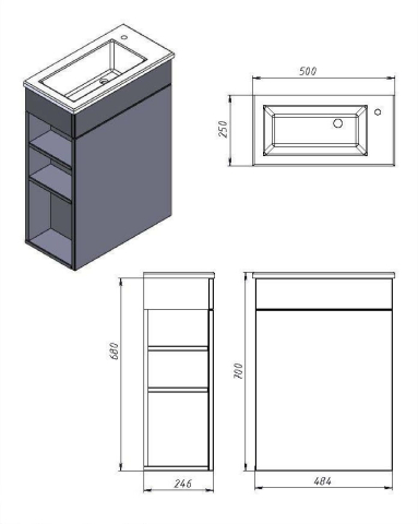 Характеристики Тумба для ванної з умивальником T-50 антрацит Amadeo Ювента