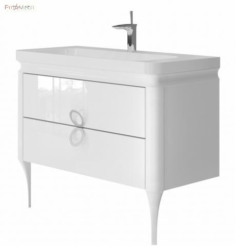 Тумба для ванної з умивальником Tc-105 Ticino біла Ювента гарно доповнить інтер'єр ванної кімнати і допоможе раціонально використовувати простір під раковиною і покращує естетичний вигляд в цілому. Тумба комплектується керамічним умивальником «Luxury-105», виробник «Sanovit», Туреччина і має дві висувні шухляди з металевими боковинами, які дозволяють зручно розкласти всілякі гелі, креми, рушники та інші речі, заховати побутову хімію, приховуючи їх від оточуючих. Дно шухляд виготовлене з ДСП товщиною 16 мм, колір «титан». Корпус і фасадні частини виготовлені з МДФ одностороннього ламінування товщиною 16 мм. Зовні поверхню меблів покрита високоглянцевою емаллю в контрастному поєднанні: корпус - білого кольору, з фасадами - білого глянцю. Характерними особливостями серії Ticino Ювента є стильний і впливовий дизайн; округлі форми і плавні лінії; глянцеве покриття корпусів і фасадів, яке наділяє предмети меблів дзеркальним блиском; декоративний карниз і ніжки гострої форми з МДФ товщиною 60 мм додають витонченості; круглі дизайнерські ручки з нержавіючої сталі; підвісний монтаж - кріплення до стіни; якісна і надійна фурнітура: приховані направляючі з функцією самодотягування повного висунення типу «InnoTech», виробник «Hettich» і накладні самодовідні петлі, які забезпечують плавне і м'яке закривання. Чудовий і розкішний гарнітур Тічино Ювента стане вишуканим і одночасно простим доповненням вашої ванної кімнати.