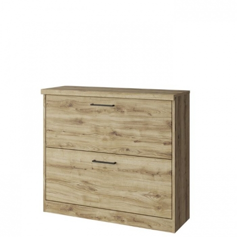 Елегантна непідвладна часу тумба для взуття 2K Doorset Mebel Bos, який містить два закритих відділення з відкидними фасадами. Тумба привертає увагу вдалим поєднанням класики та простати виконання; теплим відтінком дуб наварра зі структурою необробленого дерева, з видимими кільцями та сучками; довгастими пластиковими ручками, чорного кольору; фірмовими комплектуючими. Завдяки меблям Дорсет Меблі Бос Ви створите затишну, домашню атмосферу – ідеальну для відпочинку та зустрічей з друзями.