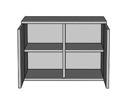 тумба у формі лавочки з м’яким сидінням має два закритих відділення з поличками всередині |