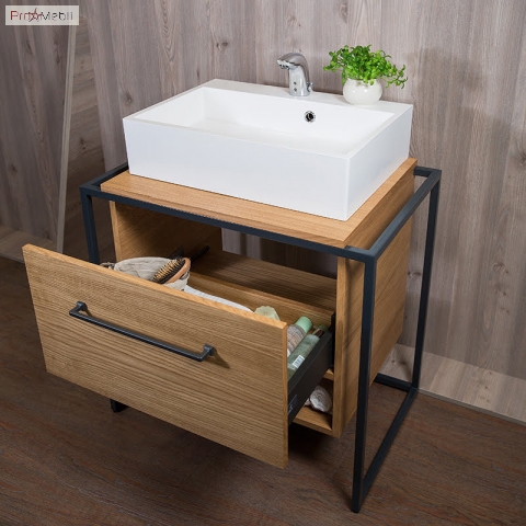 Тумба для ванної Loft-1 без умивальника Fancy Marble з незвичайним сміливим дизайном, чудово доповнить інтер'єр ванної кімнати і допоможе раціонально використовувати простір. Тумба має одну висувну шухляду і відкриту нішу, які дозволяють зберігати різну побутову хімію і господарські дрібниці. Корпус і фасадні частини виготовлені з ДСП товщиною 16 мм оброблені водовідштовхувальним маслом з компонентами воску, торцеві поверхні облицьовані крайкою ПВХ, з використанням каркаса із сталевої рами. Акуратна тумба виконана в кольорі дуб. Головною особливістю є дизайн витриманий в стилі лофт; динамічні лінії, прямокутні форми; довгасті металеві ручки; система «Soft close», яка забезпечує плавне і м'яке закривання. Fancy Marble - уособлення по-справжньому високої якості, витонченого дизайну і відмінною функціональності.