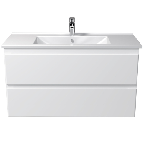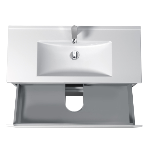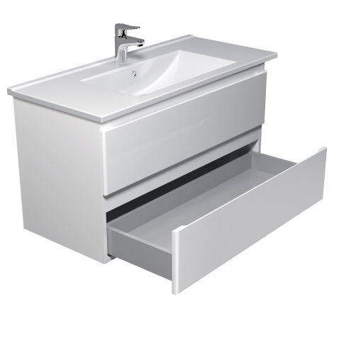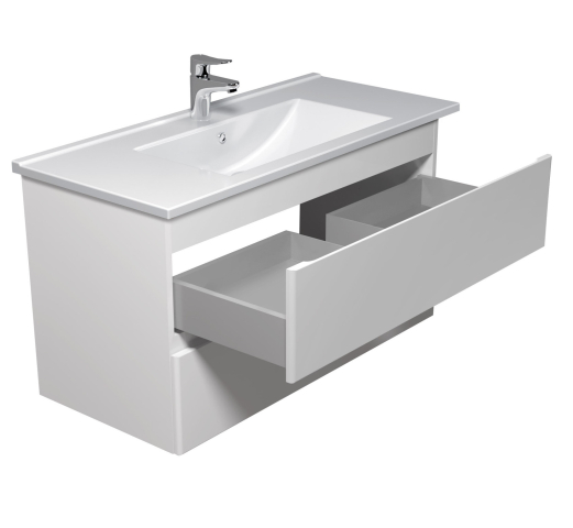Тумба для ванної з умивальником 100-A (Su 100) Unik Мойдодир — створена для тих, хто прагне до гармонійного і стильного оформлення інтер'єру ванної кімнати. Тумба комплектується порцеляновим умивальником «Su-100», виробник Туреччина, і має дві висувні шухляди, що дозволяє зручно розмістити все необхідне: від косметики і рушників до побутової хімії, зберігши акуратність і порядок у ванній кімнаті. Корпус виготовлений з міцної ДСП Kronospan товщиною 16 мм, фасади виконані з МДФ Kronospan товщиною 16 мм, в благородному кольорі білий глянець, який візуально розширює простір, освіжає інтер'єр і органічно поєднується з дизайнами будь-якої спрямованості — від лаконічного сучасного до елегантного класичного. Особлива увага в колекції приділена виразним деталям: лаконічний, стриманий дизайн без нав'язливого декору, відсутність традиційних ручок — замість них акуратні фрезеровані виїмки на фасадних частинах; підвісний монтаж, що надає легкість і легкість конструкції; а також використання першокласної фурнітури — напрямних Hettich, що забезпечують плавне, безшумне закривання. Завдяки колекції Unik Мойдодыра ви з легкістю створите атмосферу затишку, врівноваженості і комфорту — ту саму ванну, в яку хочеться повертатися знову і знову.