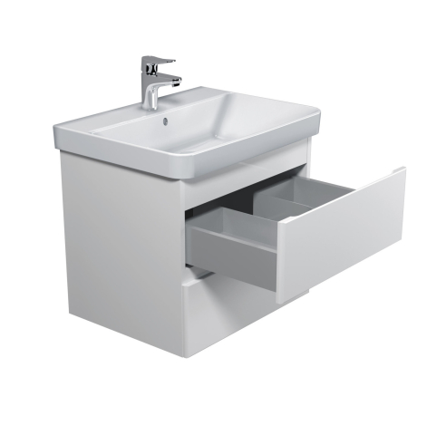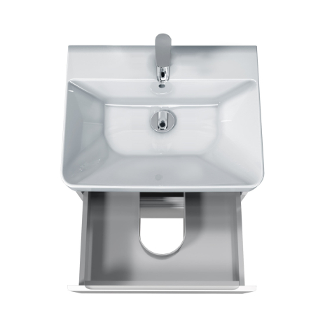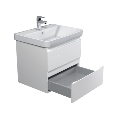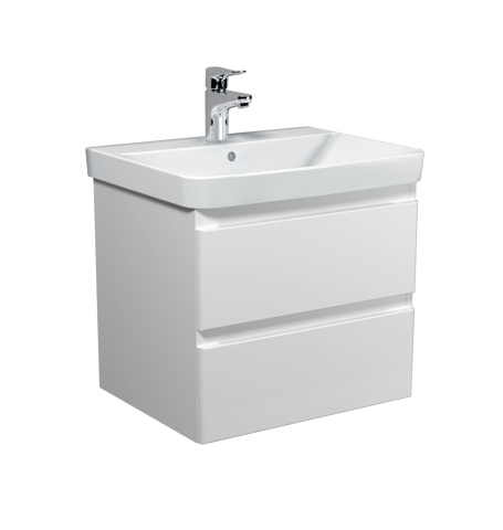 Тумба для ванної з умивальником 60-A (Vivace 60) Unik Мойдодир — створена для тих, хто прагне до гармонійного і стильного оформлення інтер'єру ванної кімнати. Тумба комплектується порцеляновим умивальником «Vivace-60», виробник Туреччина, і має дві висувні шухляди, що дозволяє зручно розмістити все необхідне: від косметики і рушників до побутової хімії, зберігши акуратність і порядок у ванній кімнаті. Корпус виготовлений з міцної ДСП Kronospan товщиною 16 мм, фасади виконані з МДФ Kronospan товщиною 16 мм, в благородному кольорі білий глянець, який візуально розширює простір, освіжає інтер'єр і органічно поєднується з дизайнами будь-якої спрямованості — від лаконічного сучасного до елегантного класичного. Особлива увага в колекції приділена виразним деталям: лаконічний, стриманий дизайн без нав'язливого декору, відсутність традиційних ручок — замість них акуратні фрезеровані виїмки на фасадних частинах; підвісний монтаж, що надає легкість і легкість конструкції; а також використання першокласної фурнітури — напрямних Hettich, що забезпечують плавне, безшумне закривання. Завдяки колекції Unik Мойдодыра ви з легкістю створите атмосферу затишку, врівноваженості і комфорту — ту саму ванну, в яку хочеться повертатися знову і знову.