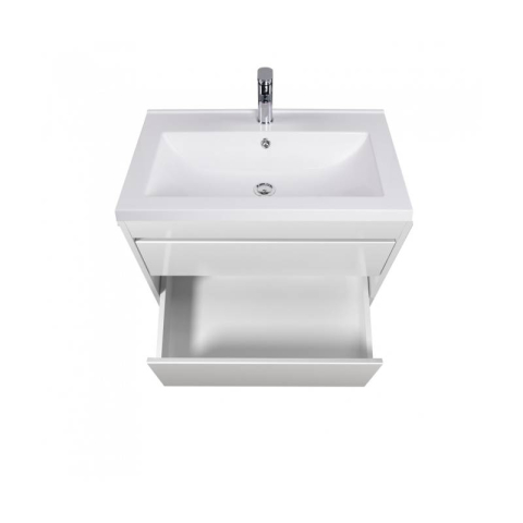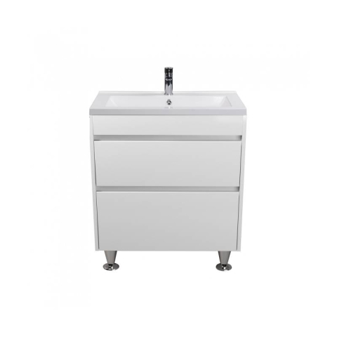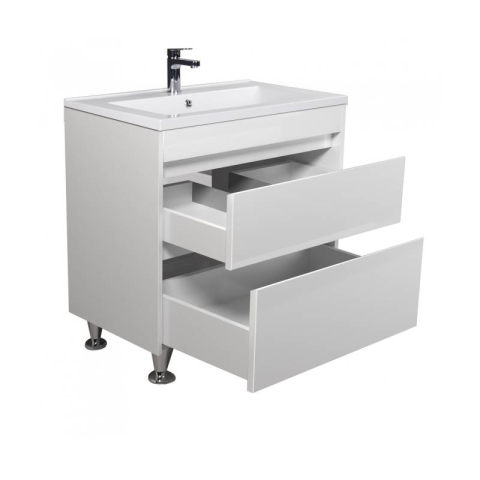 Тумба для ванної з умивальником 60-U Prime Мойдодир гарно доповнить інтер'єр ванної кімнати і допоможе раціонально використовувати простір під раковиною і покращує естетичний вигляд в цілому. Тумба комплектується умивальником із штучного камня «Cosmopolitan-70», виробник «TM Amidicon», Україна і має дві висувні шухляди, які дозволяють зручно розкласти всілякі гелі, креми, рушники та інші речі, заховати побутову хімію, приховуючи їх від оточуючих. Корпус виготовляється з ламінованого ДСП товщиною 16 мм, фасади з МДФ товщиною 16 мм. Меблі для ванної Прайм Мойдодир виконані в класичному білому кольорі, який ідеально впишуться в будь-який дизайн. Характерними особливостями меблів Prime Moidodir є лаконічність і функціональність; бездоганність форм; мінімальне декоративне оформлення; цікаве дизайнерське рішення: відсутність ручок, їх роль виконують фрезеровані на фасаді виїмки; фірмові комплектуючі: направляючі виробництва «Hettich», які забезпечують плавне і м'яке закривання. Меблі Prime Мойдодир дозволять зробити простір ванної кімнати максимально комфортним і створять затишок у Вашій ванній кімнаті.