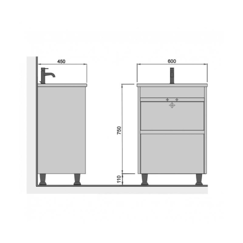 Характеристики Тумба для ванної з умивальником 60-U Cosmo Prime Мойдодир