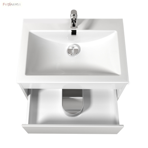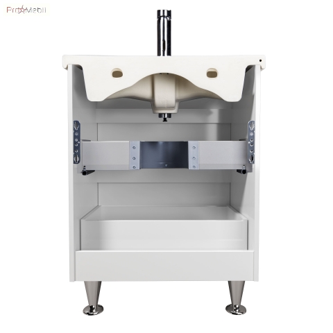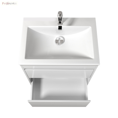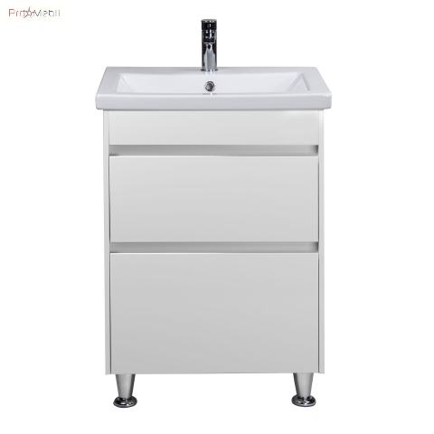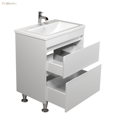 Тумба для ванної з умивальником 60-U Prime Мойдодир гарно доповнить інтер'єр ванної кімнати і допоможе раціонально використовувати простір під раковиною і покращує естетичний вигляд в цілому. Тумба комплектується керамічним умивальником «Como-60» і має дві висувні шухляди, які дозволяють зручно розкласти всілякі гелі, креми, рушники та інші речі, заховати побутову хімію, приховуючи їх від оточуючих. Корпус виготовляється з ламінованого ДСП товщиною 16 мм, фасади з МДФ товщиною 16 мм. Меблі для ванної Прайм Мойдодир виконані в класичному білому кольорі, який ідеально впишуться в будь-який дизайн. Характерними особливостями меблів Prime Moidodir є лаконічність і функціональність; бездоганність форм; мінімальне декоративне оформлення; цікаве дизайнерське рішення: відсутність ручок, їх роль виконують фрезеровані на фасаді виїмки; фірмові комплектуючі: направляючі виробництва «Hettich», які забезпечують плавне і м'яке закривання. Меблі Prime Мойдодир дозволять зробити простір ванної кімнати максимально комфортним і створять затишок у Вашій ванній кімнаті.