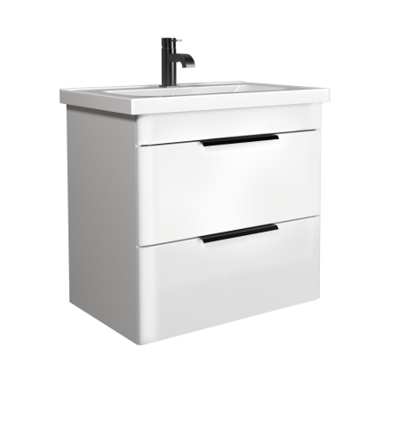 Тумба для ванної з умивальником 65-A Iris Мойдодир — яскраве втілення стилю та натхнення від української фабрики Мойдодир, створена для тих, хто хоче перетворити ванну на простір естетики, затишку та бездоганного смаку. Тумба укомплектована порцеляновим умивальником «Fenova-65» виробництва Туреччини і оснащена двома висувними ящиками, які дозволять зручно розмістити всілякі гелі, креми, рушники та інші необхідні дрібниці, а також приховати побутову хімію, яку не хочеться залишати на виду. Корпус меблів виготовлений з міцного і надійного ДСП Kronospan товщиною 16 мм, фасадні елементи виконані з МДФ Kronospan товщиною 16 мм, в благородному білому глянцевому відтінку — повітряному, світлому, свіжому, який розширює простір, робить інтер'єр легким і гармонійним. Головна особливість серії — витончений, лаконічний дизайн з інтегрованими в край фасаду чорними ручками, підвісний варіант установки, а також преміальна фурнітура. З меблями Iris Мойдодир ви легко створите атмосферу, в яку хочеться повертатися: затишну, організовану, з тонкою естетикою і почуттям врівноваженості — ту саму ванну, де хочеться зупинитися, вдихнути глибше і відчути справжній комфорт.