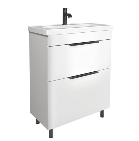 Тумба для ванної з умивальником 65-U Iris Мойдодир — яскраве втілення стилю та натхнення від української фабрики Мойдодир, створена для тих, хто хоче перетворити ванну на простір естетики, затишку та бездоганного смаку. Тумба укомплектована порцеляновим умивальником «Fenova-65» виробництва Туреччини і оснащена двома висувними ящиками, які дозволять зручно розмістити всілякі гелі, креми, рушники та інші необхідні дрібниці, а також приховати побутову хімію, яку не хочеться залишати на виду. Корпус меблів виготовлений з міцного і надійного ДСП Kronospan товщиною 16 мм, фасадні елементи виконані з МДФ Kronospan товщиною 16 мм, в благородному білому глянцевому відтінку — повітряному, світлому, свіжому, який розширює простір, робить інтер'єр легким і гармонійним. Головна особливість серії — витончений, лаконічний дизайн з інтегрованими в край фасаду чорними ручками, підлоговий варіант установки, а також преміальна фурнітура. З меблями Iris Мойдодир ви легко створите атмосферу, в яку хочеться повертатися: затишну, організовану, з тонкою естетикою і почуттям врівноваженості — ту саму ванну, де хочеться зупинитися, вдихнути глибше і відчути справжній комфорт.