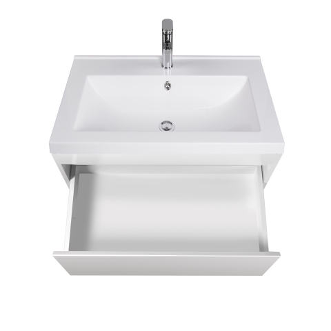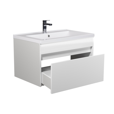 Тумба для ванної з умивальником 80-A Cosmo Prime Мойдодир гарно доповнить інтер'єр ванної кімнати і допоможе раціонально використовувати простір під раковиною і покращує естетичний вигляд в цілому. Тумба комплектується умивальником із штучного камня «Cosmopolitan-80», виробник «TM Amidicon», Україна і має одну висувну шухляду, яко дозволяє зручно розкласти всілякі гелі, креми, рушники та інші речі, заховати побутову хімію, приховуючи їх від оточуючих. Корпус виготовляється з ламінованого ДСП товщиною 16 мм, фасади з МДФ товщиною 16 мм. Меблі для ванної Прайм Мойдодир виконані в класичному білому кольорі, який ідеально впишуться в будь-який дизайн. Характерними особливостями меблів Prime Moidodir є лаконічність і функціональність; бездоганність форм; мінімальне декоративне оформлення; цікаве дизайнерське рішення: відсутність ручок, їх роль виконують фрезеровані на фасаді виїмки; фірмові комплектуючі: направляючі виробництва «Hettich», які забезпечують плавне і м'яке закривання. Меблі Prime Мойдодир дозволять зробити простір ванної кімнати максимально комфортним і створять затишок у Вашій ванній кімнаті.