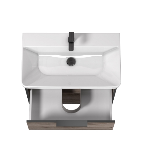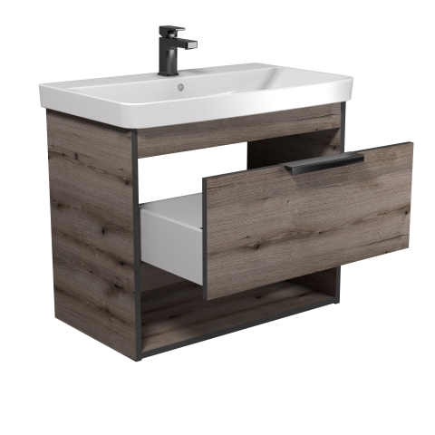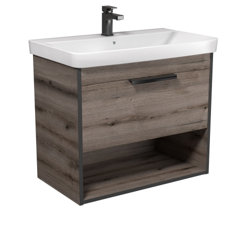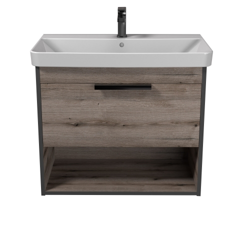 Сучасна та стильна тумба для ванної з умивальником 80-A з колекції Denver Мойдодир стане зручним місцем для зберігання необхідного у ванній кімнаті приладдя, додасть відчуття чистоти та бездоганності в сучасний інтер'єр ванної кімнати. Тумба комплектується керамічним умивальником «Vivace-80», виробник Туреччина та має одну висувну шухляду та відкриту поличку. Характерними особливостями тумби є незвичайний дизайн, який поєднує в собі елементи лофта та індустріального стилю, що надають сучасний та ексклюзивний вигляд; текстура деревини «дуб евок»; затемнена кромка та металеві елементи: накладні ручки, чорного кольору, додають ефектну контрастну гаму; а фірмові комплектуючі Hettich забезпечують плавне та м'яке закривання. Колекція Denver Мойдодир підійде для тих, хто хоче створити сучасний та нестандартний дизайн у ванній кімнаті, що поєднує у собі функціональність та стильний вигляд.