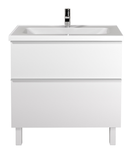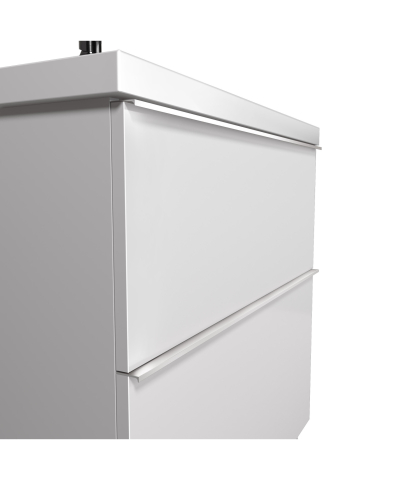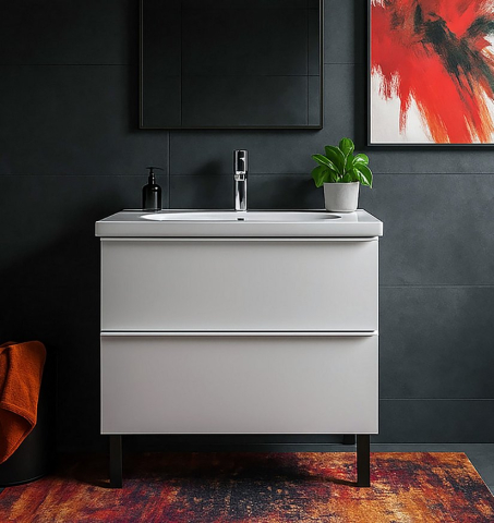 Тумба для ванної з умивальником 80-U Grin Мойдодир - сучасне і виразне рішення для ванної кімнати, створене для тих, хто цінує спокійну естетику, відчуття затишку і продуманість в деталях. Тумба укомплектована порцеляновим умивальником «Fenova-80» виробництва Туреччини і оснащена двома місткими висувними ящиками, які дозволяють зручно організувати зберігання косметики, засобів догляду, рушників та інших повсякденних дрібниць, акуратно приховуючи все зайве від погляду. Корпус і фасадні елементи виконані з міцного ламінованого ДСП Kronospan товщиною 16 мм і покриті трьома шарами преміальної двокомпонентної ультрафіолетової фарби Iris (Іспанія), що формує рівну глянцеву поверхню, стійку до подряпин, вицвітання і щоденного зносу, розкриваючи чистий білий відтінок - світлий, свіжий і візуально розширює простір, наповнюючи інтер'єр відчуттям легкості і гармонії. Головна особливість серії - лаконічний, ретельно вивірений дизайн з інтегрованими в край фасаду ручками, можливість вибору підлогового або підвісного способу установки, а також надійна фурнітура. З меблями Grin Мойдодир легко створити атмосферу, в яку хочеться повертатися знову і знову: спокійну, акуратну і естетично врівноважену - саме ту ванну кімнату, де комфорт відчувається в кожному русі і погляді.