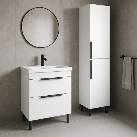 Тумба для ванної з умивальником 85-U Iris Мойдодир — яскраве втілення стилю та натхнення від української фабрики Мойдодир, створена для тих, хто хоче перетворити ванну на простір естетики, затишку та бездоганного смаку. Тумба укомплектована порцеляновим умивальником «Fenova-85» виробництва Туреччини і оснащена двома висувними ящиками, які дозволять зручно розмістити всілякі гелі, креми, рушники та інші необхідні дрібниці, а також приховати побутову хімію, яку не хочеться залишати на виду. Корпус меблів виготовлений з міцного і надійного ДСП Kronospan товщиною 16 мм, фасадні елементи виконані з МДФ Kronospan товщиною 16 мм, в благородному білому глянцевому відтінку — повітряному, світлому, свіжому, який розширює простір, робить інтер'єр легким і гармонійним. Головна особливість серії — витончений, лаконічний дизайн з інтегрованими в край фасаду чорними ручками, підлоговий варіант установки, а також преміальна фурнітура. З меблями Iris Мойдодир ви легко створите атмосферу, в яку хочеться повертатися: затишну, організовану, з тонкою естетикою і почуттям врівноваженості — ту саму ванну, де хочеться зупинитися, вдихнути глибше і відчути справжній комфорт.