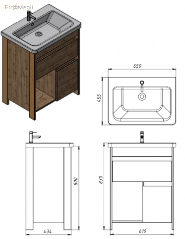Опис Тумба для ванної з умивальником Brx-65 дуб вотан Bronx Ювента Ювента