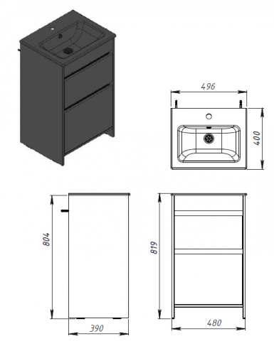 Опис Тумба для ванної з умивальником Dt-50 Detmold Ювента