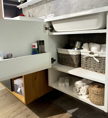 вмонтовано два регульованих навіси, завіси з дотягом з системою «Soft Сlose» |