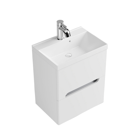 Тумба для ванної з умивальником Rin 50 Rubicon Fancy Marble стане стильним і функціональним акцентом в інтер'єрі ванної кімнати, дозволяючи грамотно організувати простір під раковиною і підтримувати естетичну гармонію в приміщенні. Тумба комплектується умивальником з литого штучного каменю Rubicon 500 і оснащена двома висувними ящиками, в яких зручно зберігати побутову хімію, косметичні засоби та інші необхідні дрібниці. Корпус і фасадні частини виконані з МДФ товщиною 16 мм, з покриттям вологостійкою ПВХ-плівкою. Елегантна тумба представлена у вишуканому білому глянцевому кольорі, також доступне виготовлення в білому матовому і графітовому матовому варіантах. Відмінними особливостями є лаконічні прямі лінії, відсутність виступаючих ручок, їх роль виконують акуратні фрезеровані виїмки на фасаді, а також система «Soft close» для м'якого і плавного закривання. Fancy Marble - гармонія сучасного дизайну, високої якості і практичності.