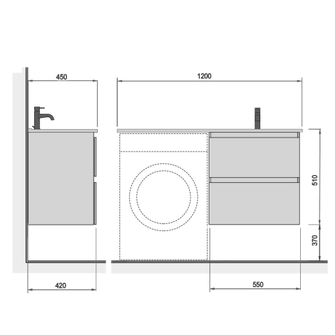 Опис Тумба для ванної з умивальником підвісна з крилом над пральною машиною 60-A Adam 120 R Unik Мойдодир