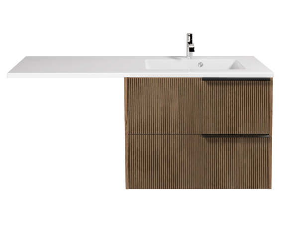 Тумба для ванної з умивальником підвісна з крилом над пральною машиною 80-A Adam 140 R Grace Мойдодир - справжнє втілення пишноти і таємничості, де кожен елемент немов зберігає в собі таємницю і унікальну історію, написану природою, особливу глибину і багатогранність, що надають інтер'єру ванної кімнати особливу атмосферу затишку і загадковості, стане стильним і практичним рішенням для сучасної ванної кімнати і допоможе раціонально використовувати простір, особливо якщо в ній передбачена пральна машина. Тумба комплектується умивальником зі штучного каменю «Adam-140-R» шириною 140 см із правим крилом, яке повністю закриває техніку, створюючи акуратний цілісний вигляд інтер'єру і одночасно забезпечуючи зручну робочу поверхню для косметики, аксесуарів або побутових дрібниць, а два висувних ящика дозволять зручно розкласти всілякі гелі, креми, рушники та інші речі, заховати побутову хімію, приховуючи їх від оточуючих. Характерними особливостями меблів є вишуканий і розкішний вигляд; майстерно оброблені фасади з рифленням, які особливим чином підкреслюють елегантний зовнішній вигляд; чорні ручки, немов акценти в симфонії дизайну, додають вишуканості і сучасного шарму; підвісний монтаж - подарує відчуття легкості і повітряності, дозволяючи вам використовувати простір під, на свій розсуд; фірмові комплектуючі. Меблі Grace Мойдодир - це не просто частина інтер'єру, це маленький шедевр, здатний перетворити ванну кімнату в особистий простір релаксації і натхнення.