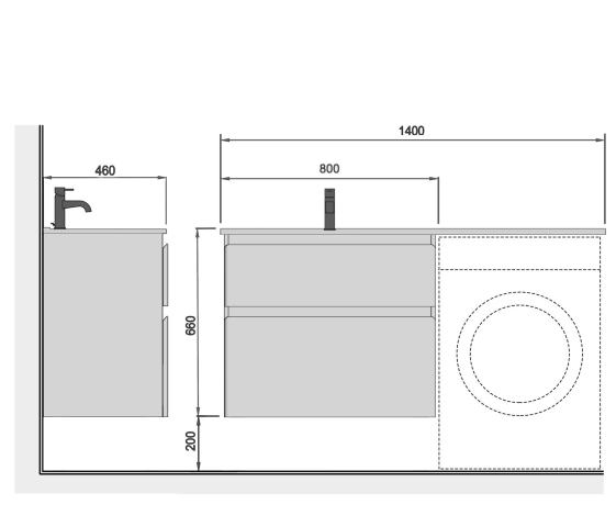 Тумба з умивальником та з крилом над пральною машиною |