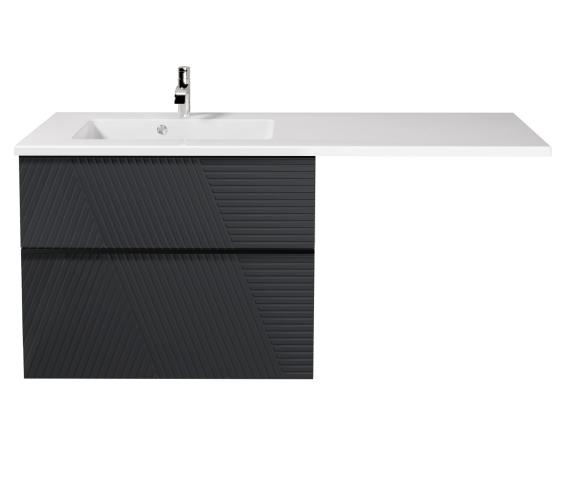 Тумба для ванної з умивальником підвісна з крилом над пральною машиною 80-U Adam 140 L Rome Умивальник зачаровує з першого погляду, змушуючи забути про рутину і перенестися в світ естетики, вишуканості та справжнього комфорту, перетворить вашу ванну кімнату на стильний і функціональний простір, ставши стильним і практичним рішенням для сучасної ванної кімнати та допоможе раціонально використовувати простір, особливо якщо в ній передбачена пральна машина. Тумба комплектується умивальником зі штучного каменю «Adam-140-L» шириною 140 см з лівим крилом, яке повністю закриває техніку, створюючи акуратний цілісний вигляд інтер'єру і одночасно забезпечуючи зручну робочу поверхню для косметики, аксесуарів або побутових дрібниць, а два висувних ящика дозволять зручно розкласти всілякі гелі, креми, рушники та інші речі, заховати побутову хімію, приховуючи їх від оточуючих. Тумба виділяється сучасним мінімалістичним дизайном з графітовою палітрою, елегантними лініями і оригінальним фрезеруванням фасадів, що надає текстуру, ледь помітними ручками, інтегрованими в край фасаду, чорного кольору, фірмовими напрямними. Вибираючи Rome Мойдодир, ви вибираєте унікальну атмосферу затишку, гармонії і розкоші, яка стане важливою частиною вашого життя.