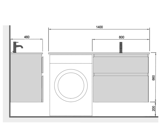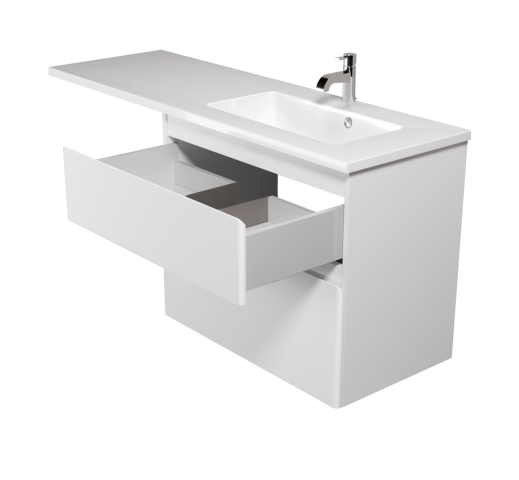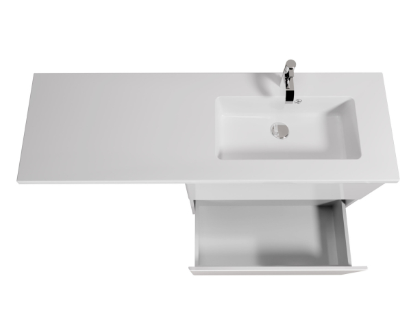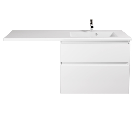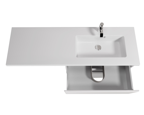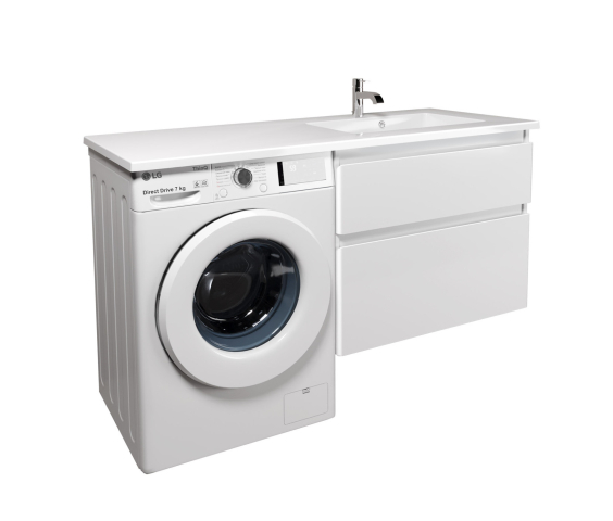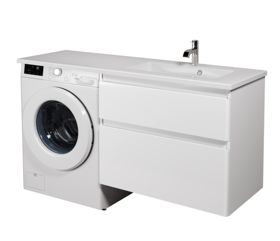 Тумба для ванної з умивальником підвісна з крилом над пральною машиною 80-U Adam 140 R Палермо Мойдодир стане стильним та практичним рішенням для сучасної ванної кімнати та допоможе раціонально використовувати простір, особливо якщо у ній передбачено пральну машину. Тумба комплектується умивальником зі штучного каменю «Adam-140-R» шириною 140 см із правим крилом, яке повністю закриває техніку, створюючи акуратний цілісний вигляд інтер’єру та водночас забезпечуючи зручну робочу поверхню для косметики, аксесуарів чи побутових дрібниць, а дві висувні шухляди, що дозволить зручно розкласти всілякі гелі, крема, рушники та інші речі, заховати побутову хімію, приховуючи їх від оточуючих. Корпус виготовлений з міцного пофарбованого ДСП товщиною 16 мм, фасади – з вологостійкого МДФ Kronospan товщиною 19 мм, покритих ультрафіолетовою фарбою Iris (Іспанія), що гарантує захист від вологи та збереження бездоганного вигляду протягом багатьох років. Характерними особливостями меблів Палермо Мойдодир є вишуканий стиль; глянсовий блиск; гладка округленість кутів; тонкі лінії і плавні форми; відсутність ручок, їх роль виконують фрезеровані на фасаді виїмки; підвісний монтаж; фірмові комплектуючі: направляючі Hettich з плавним і безшумним закриванням. Вибравши комплект Палермо Мойдодир, Ви наповните ванну кімнату вишуканістю і функціональністю.